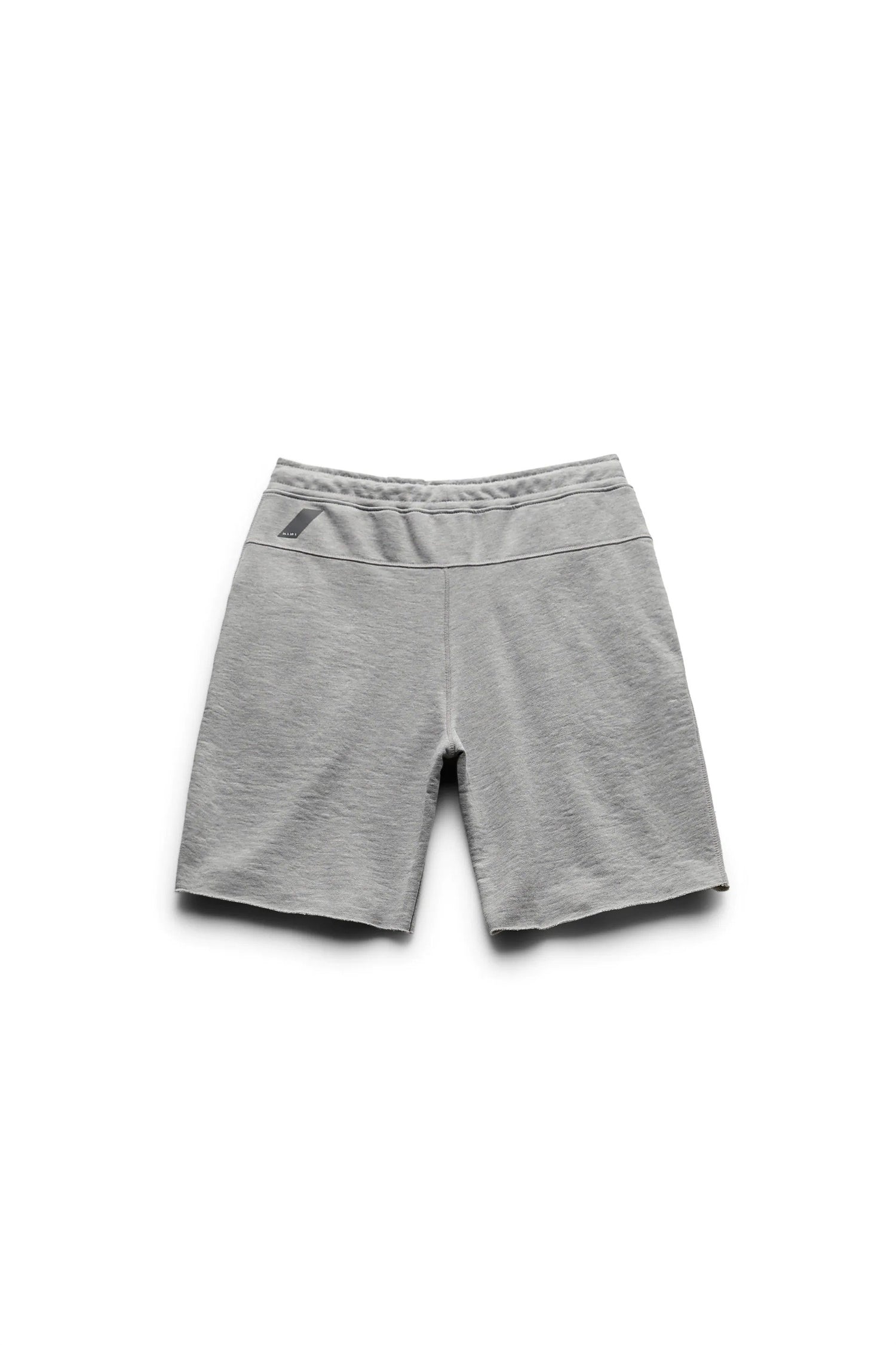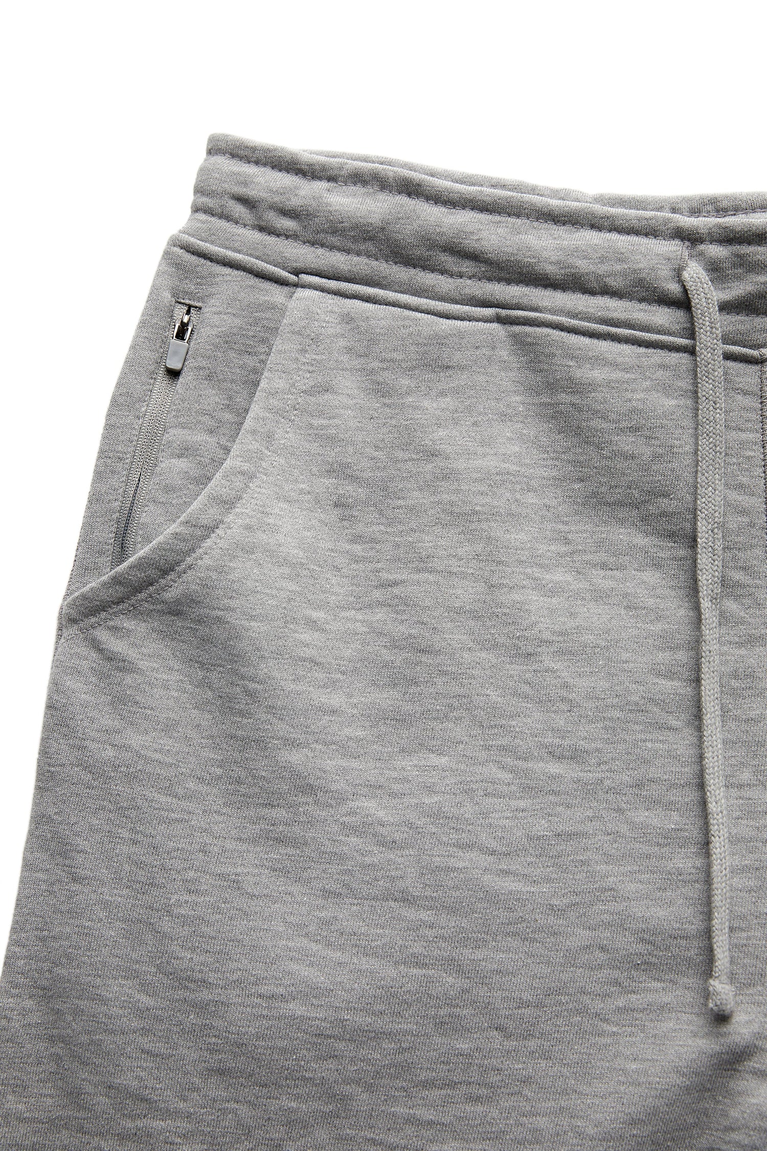 Jogger shorts with adjustable elastic drawstring waistband. Front pockets and side zip pocket. Uneven finished hem.